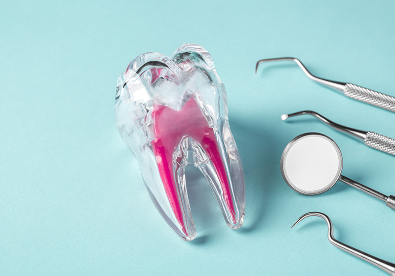 Sollte sich einer Ihrer Zähne einmal entzünden, können wir ihn durch eine Wurzelbehandlung oft noch im Mund behalten. Hierbei verwenden wir neben der manuellen Methode auch neue Techniken wie elektronische Längenmessung der Kanäle und drehmomentgesteuerte bruchstabile Nickel-Titan-Instrumente.